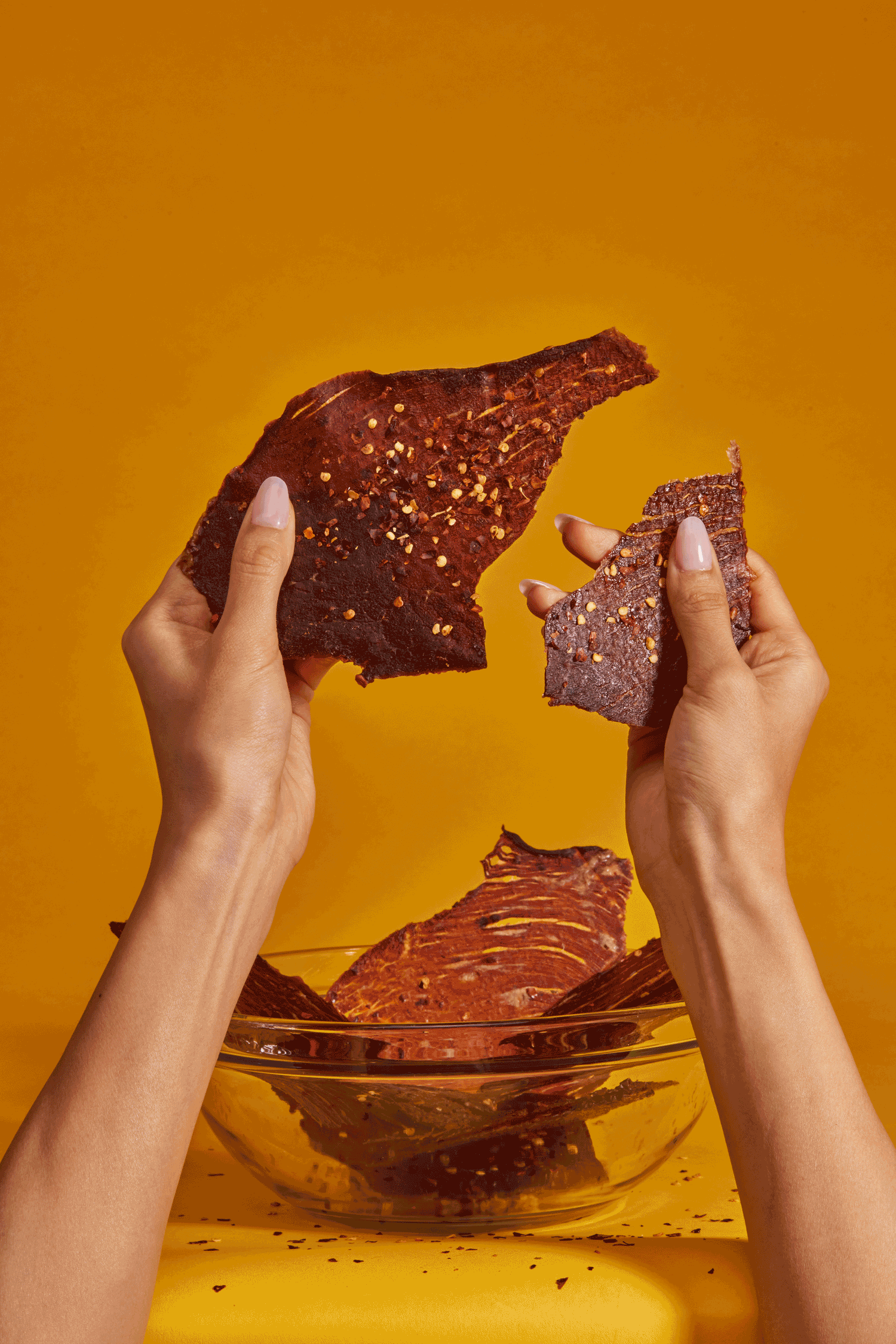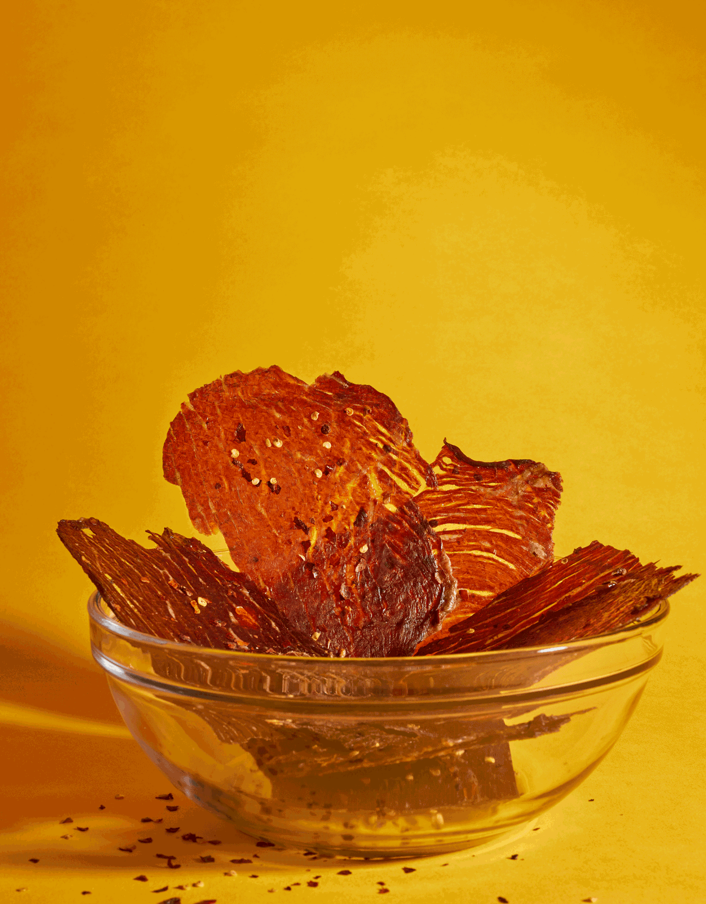 Our beef crisps are thinly-sliced premium beef marinated in our family’s traditional secret recipe. Slow dried for 24 hours to create a shatteringly crispy, crunchy, potato chip-like texture in every bite.